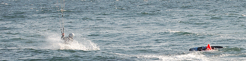 Канадская фирма Ocean Rodeo снова порадовала. Уникальное изобретение ! Простое , безопасное и главное работающее ! Предназначено оно ( не ясно как его еще назвать, может Годжо ? :) для того чтобы вы больше не трудились доставать потерянную доску нарезая галсы под водой, а доска сама догоняла вас. Эта надувная штука крепится к центру доски с небольшим продольным смещением и совершенно не мешает при катании и несложных трюках. При потере доски она работает как парус, причем разворачивает доску точно по ветру и никогда не даст доске перевернуться вверх плавниками. Исторический момент, между прочим! Внезапно и моментально ушел в прошлое "лиш"! Детали смотрите на офсайте. Кстати, изготовлена эта штука как и центральный баллон кайта - обшивка сшита из дакрона , а внутри полиуриетановый баллон. Из недостатков придумал пока один - если доска слетела и кайт упал в воду , то прийдется догонять уже доску ...