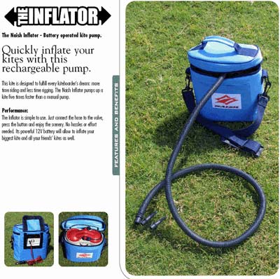 Каких извратов только не придумают! Вот вам электронасос для кайтов от Naish. Большая картинка в подробнее . Хорош наверное для больших скопищ кайтеров. Представьте картину - идет пацан по пляжу с такой штуковиной и орет - Надуваем, спускаем ! ...